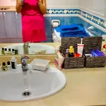 Met een patio, een balkon en een kleedruimte, is 1-slaapkamer Paradise House ingericht met een bank en een bureau en biedt comfort zoals airconditioning. Daarnaast is de accommodatie uitgerust met een satelliet-TV en wi-fi, en veiligheidsvoorzieningen zoals een kluis en een persoonlijk kluisje. 1 slaapkamer is met hypoallergene donzen kussens, hypoallergische kussens en niet-allergene kussens uitgerust. 1 badkamer met een bidet, een badkuip en een douche samen met badjassen en handdoeken wordt aangeboden.